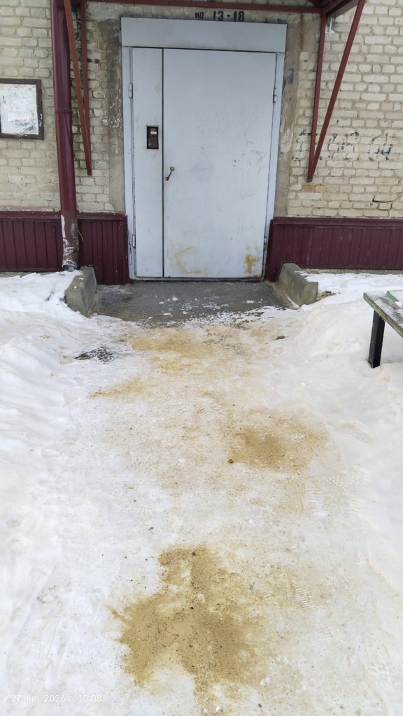 В ходе визита инспекторы зафиксировали нарушения обязательных требований. У подъездов №1, 2, 3 и 4 не была выполнена уборка входных площадок от уплотненного снега, льда и наледи. Также не очищен от зимних осадков дворовый проезд, расположенный вдоль этих подъездов.