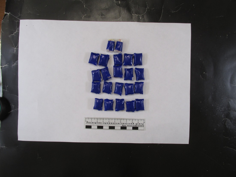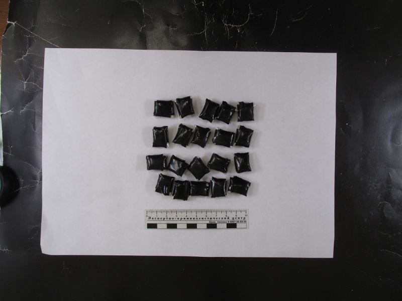 Во время личного досмотра в дежурной части в кармане его куртки полицейские обнаружили два свёртка с порошком. Ещё 40 аналогичных пакетиков были спрятаны в шарфе задержанного.