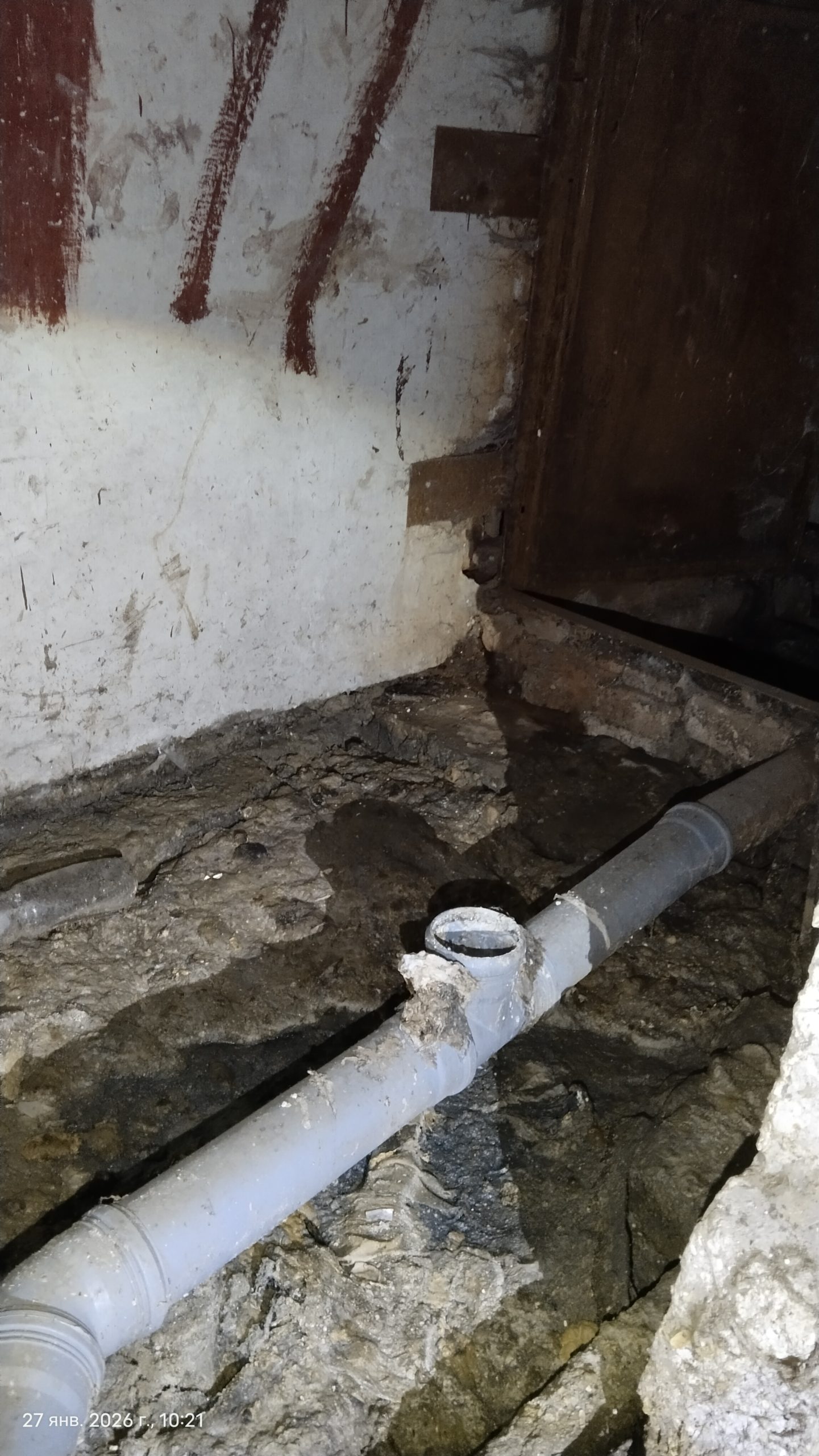 - В результате протечки произошло увлажнение грунтового пола и скопление канализационных вод.